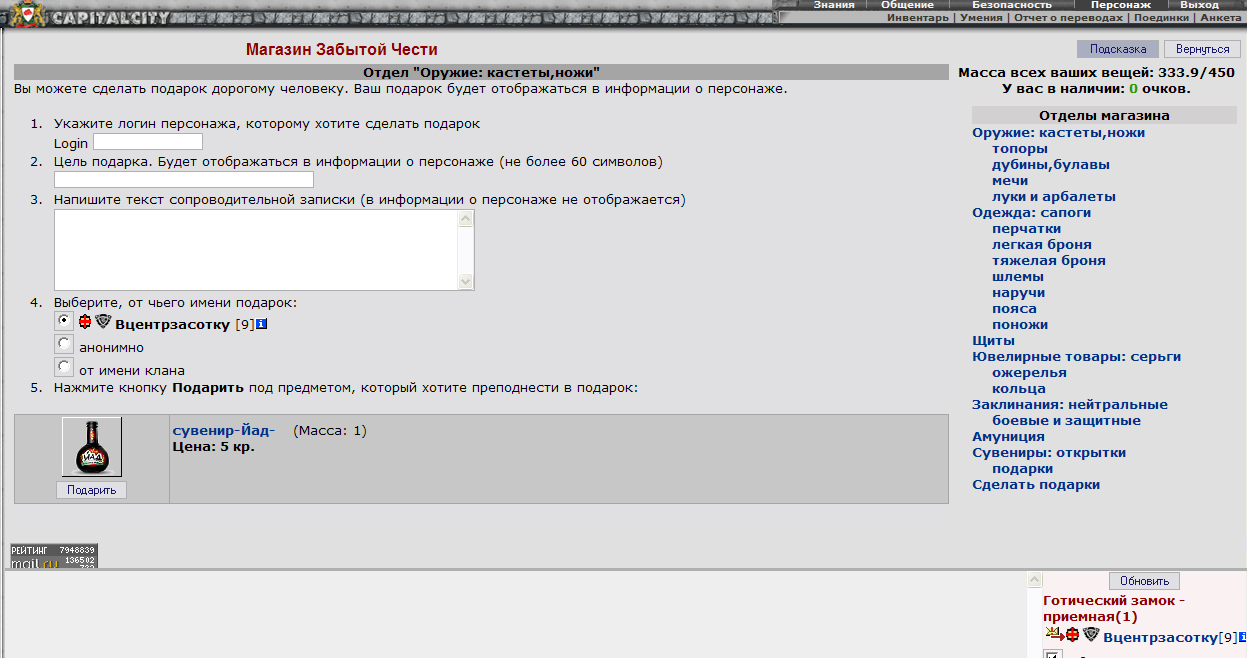 , да и не хочу портить весь шик нововведения. Но дам одним глазком взглянуть на Магазин забытой чести ;)